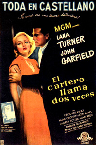 Intérpretes: Lana Turner (Cora Smith), John Garfield (Frank Chambers), Cecil Kellaway (Nick Smith), Leon Ames (Kyle Sackett), Hume Cronyn (Arthur Keats), Audrey Totter (Madge Gorland), Alan Reed (Ezra Liam Kennedy).